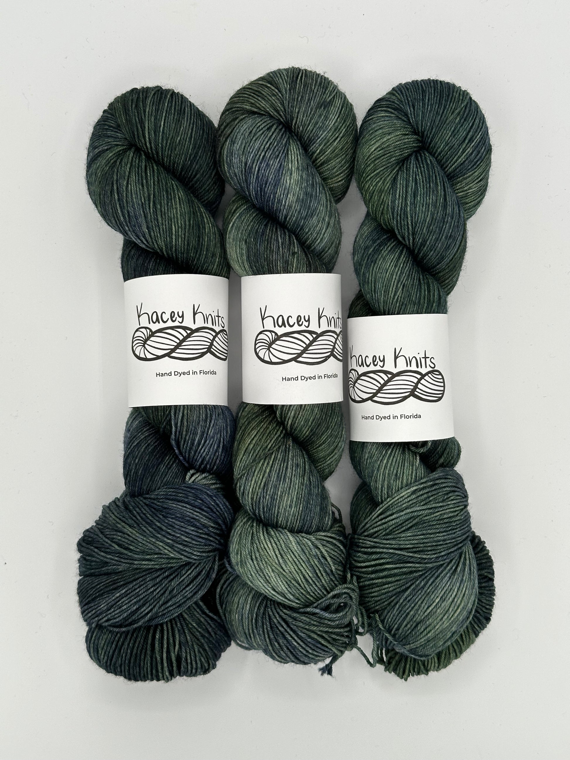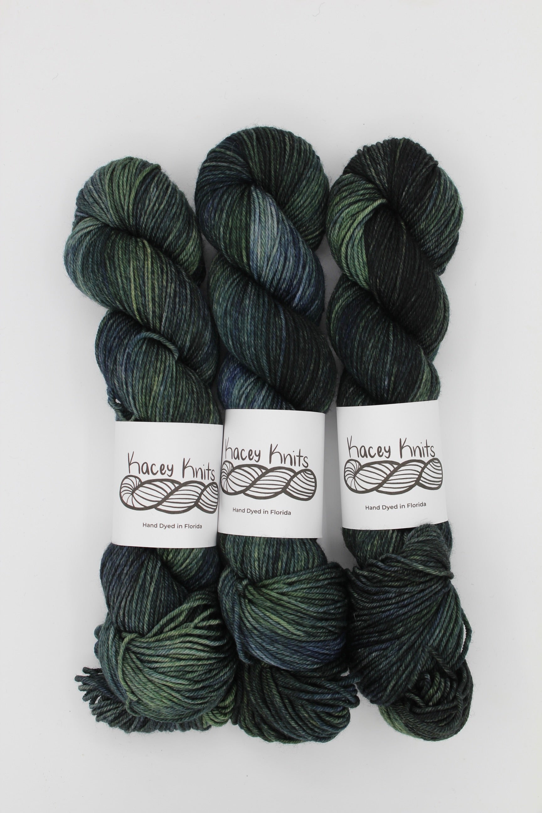 Brackish is a rich, layered colorway swimming with dark greens and blues and touches black, inspired by the brackish waters in the Bay Area of California.
