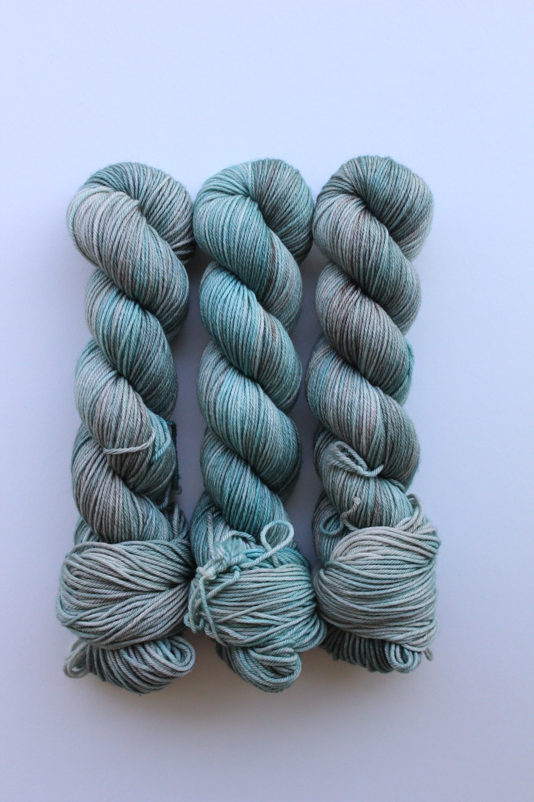 Morning Tide is a light variegated colorway, swirling with grey and blue aqua and earthy brown.